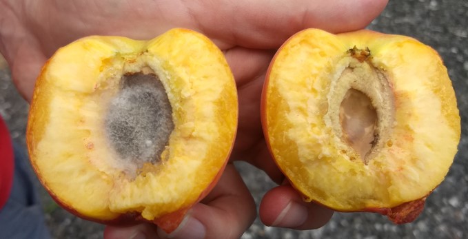 Las temperaturas bajo cero durante la floración y el desarrollo temprano del fruto, así como las lluvias excesivas cerca de la cosecha seguidas de altas temperaturas, suelen estar asociadas al desarrollo del carozo partido y aumentan la probabilidad de que se produzca.