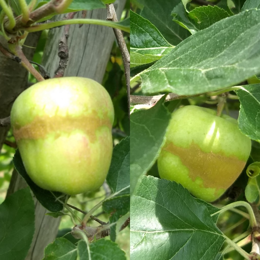 Los manzanos florecen relativamente temprano en la temporada, cuando la probabilidad de heladas es todavía alta. En años en los cuales las heladas coinciden con la floración de las manzanas, debe haber notado que algunas de sus manzanas muestran anillos de costras de colores pardos alrededor de las frutas. Estos anillos son llamados «anillos de helada», y se caracterizan por tener un color marrón y ser ásperos al tacto, como la piel de la manzana, rodeando algunas veces toda la circunferencia de la fruta, normalmente entre el ecuador y el extremo de la fruta.