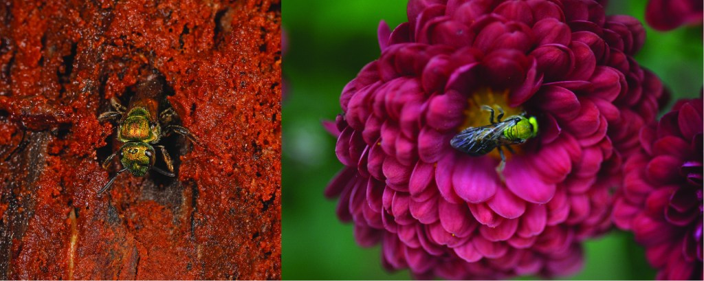 Si desea ayudar a estas abejas, asegúrese de dejar parte del suelo de su jardín sin trabajar. Después de no mucho tiempo, verá que estas abejas empezarán a visitar la zona, y si uno presta atención, se dará cuenta de que muchas están realmente entrando y saliendo del suelo… porque están anidando en él. 😊 En Maryland, estas abejas pertenecen al grupo llamado halíctidos; pequeñas abejas verde metalizado, comúnmente vistas visitando flores.
