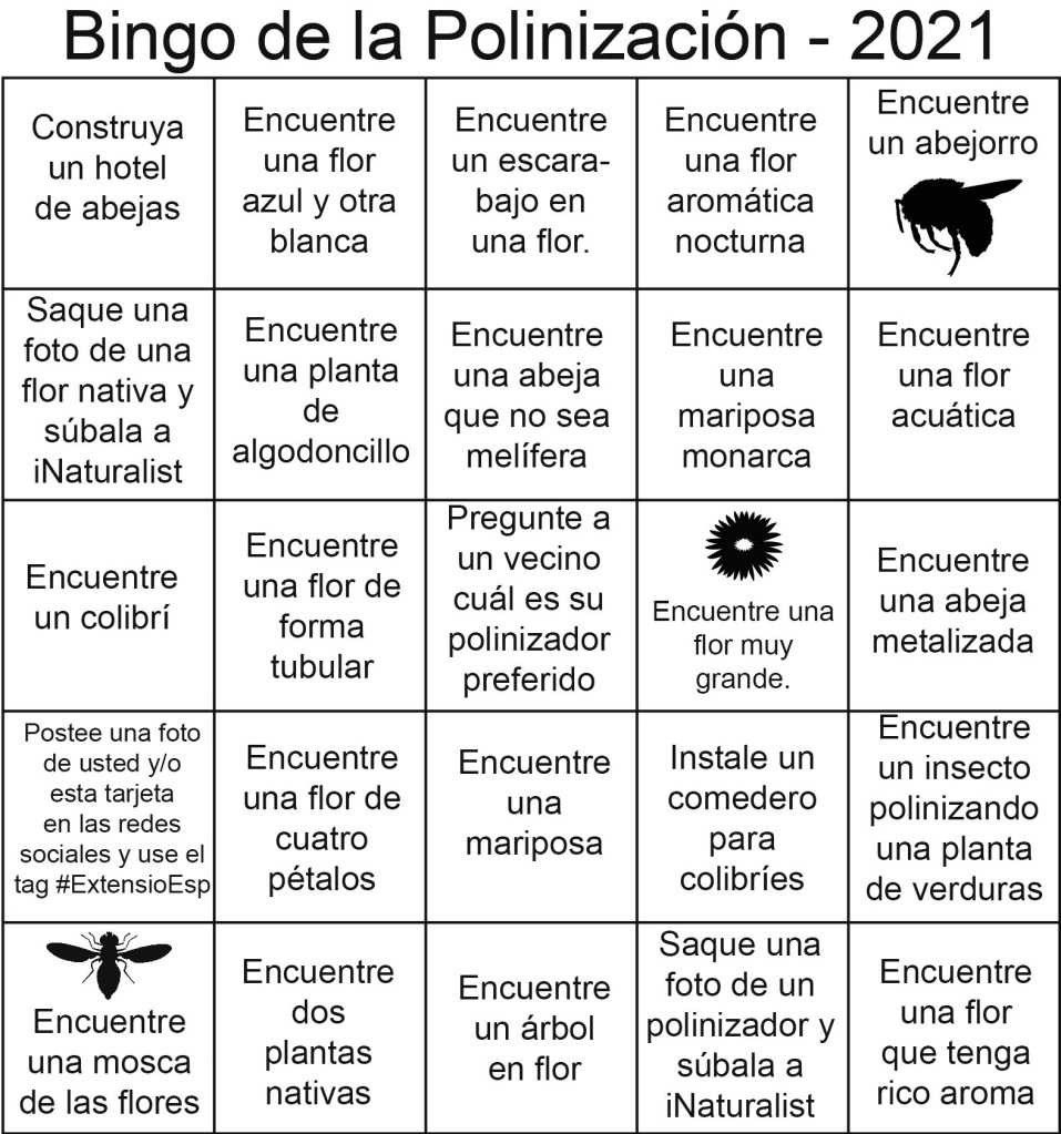 4- Cuando haya terminado, compártala con nosotros a través de las redes sociales, sacando una foto de su tarjeta (¡y de usted!) y posteándola usando los hashtags #PollinatorWeek y #ExtensionEsp.
