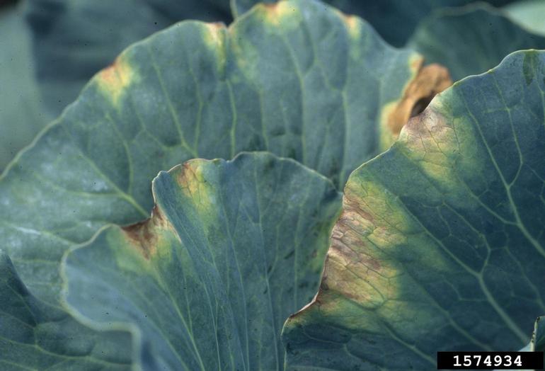 Mancha foliar del repollo. Fotos: Wikipedia, Cornell University.