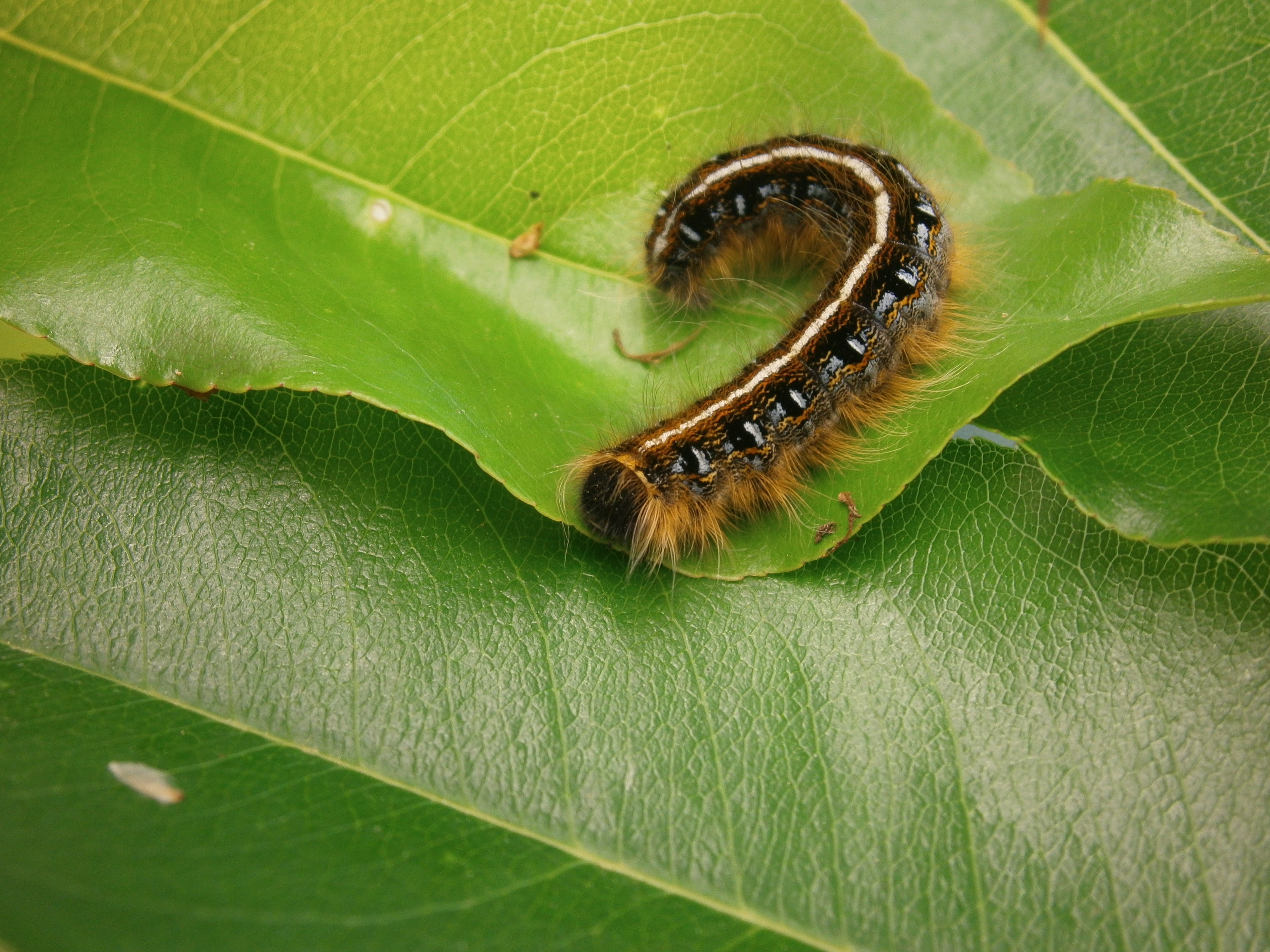 Orugas pequeñas y grandes. Las orugas cambian de color conforme crecen. Fotos: M. Abarca.