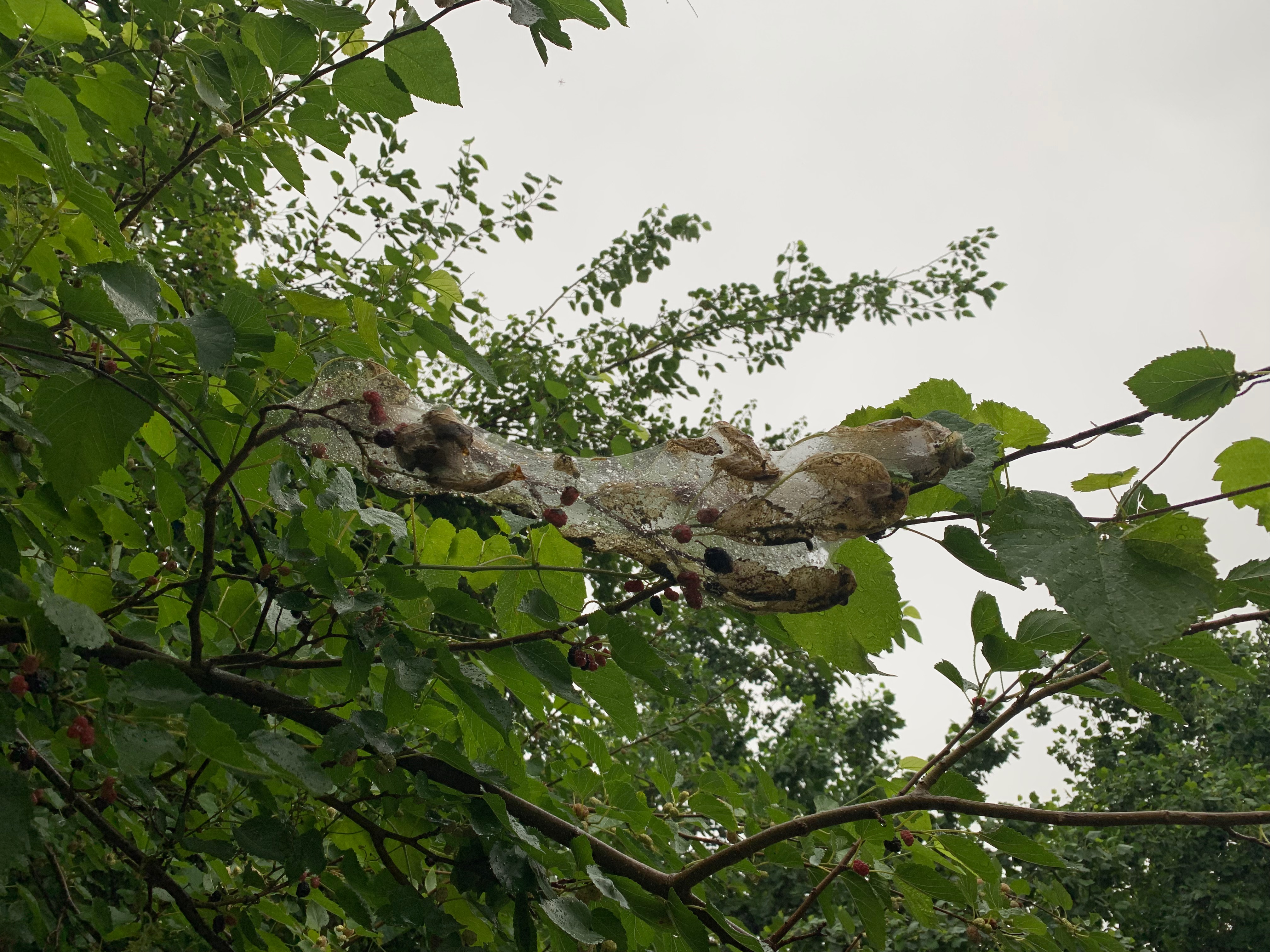 Hay especies de mariposas nocturnas o polillas que durante la etapa larvaria, es decir, cuando son orugas, construyen nidos de seda en las ramas de los árboles; se les conoce como gusanos de bolsa. Estas orugas viven en grupos de centenares de individuos, que generalmente son hermanos. La construcción de las bolsas es un proyecto grupal; cada bolsa empieza como una pequeña estructura de seda apenas visible en las ramas de los árboles y se va expandiendo conforme las orugas crecen, hasta formar estructuras de aproximadamente 30 cm de longitud. En el Este de los Estados Unidos hay dos especies de gusanos de bolsa que son muy abundantes: el gusano de bolsa del Este (Malacosoma americanum) y el gusano de bolsa de otoño (Hyphantria cunea). A pesar de construir estructuras de seda parecidas, estas especies son muy distintas físicamente y en su forma de vida. El gusano de bolsa del Este está activo durante la primavera y tiene una dieta restringida, mientras que el gusano de bolsa de otoño está activo durante el verano y tiene una dieta muy variada.