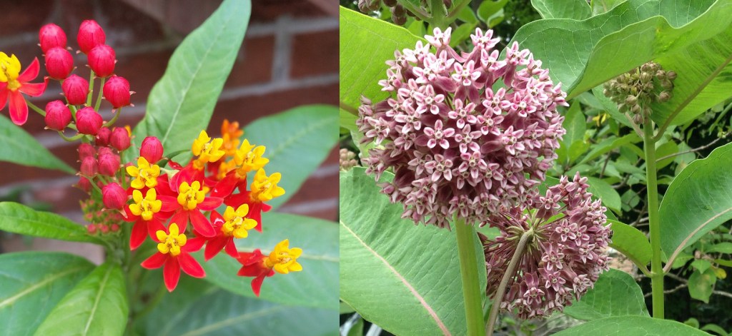¡Lo mejor que se puede hacer para ayudar a los polinizadores migratorios es ayudarlos a migrar! Esto puede sonar un poco contradictorio, pero proporcionar recursos vegetales para los polinizadores migrantes durante demasiado tiempo puede ser una mala idea, porque puede hacerlos permanezcan en la región por más tiempo del que deben, exponiéndolos a parásitos por más tiempo y, finalmente, no ayudándolos a llegar a sus destinos finales a tiempo. Tomemos a las monarcas como ejemplo. Las orugas monarca se alimentan de algodoncillo, y en nuestra región hay especies nativas y no nativas de algodoncillo en las que pueden desarrollarse. Las especies nativas naturalmente comienzan a secarse al final del verano. Esto cambia la química de la planta y «le hace saber» a las orugas que se acerca el final de la temporada. Este es uno de los desencadenantes para que las orugas comiencen a transformarse en mariposas adultas. Sin ese disparador de la planta huésped, la oruga continúa alimentándose … lo que sucede cuando se desarrollan en algodoncillos no nativos que permanecen verdes por más tiempo. De hecho, las orugas que se desarrollan en esas especies no nativas se convierten en adultos más tarde en la temporada, y cuando finalmente emergen, puede ya ser demasiado tarde para migrar y así sobrevivir hasta la próxima primavera. Una de las mejores maneras de proteger a estos migrantes es dejarlos terminar su ciclo natural y facilitarles el partir a tiempo (¡lo sé, es difícil verlos irse!), lo que en el caso de las monarcas, requiere favorecer la siembra de algodoncillos nativos sobre sus contrapartes no nativas.