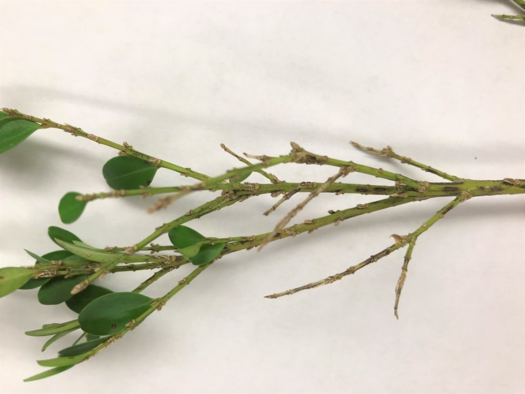 Los bojes (Buxus sp.) son arbustos leñosos de hoja perenne comunes en los paisajes del Atlántico Medio. Esta planta ha sido un elemento importante en jardines de diseño formal desde el siglo XVIII, y aún hoy atrae a los jardineros por su atractivo follaje perenne y excelente resistencia a los ciervos. Sin embargo, en la última década una nueva enfermedad fúngica ha causado daños importantes en el boj, incluso amenazando su uso como elemento básico de jardín. La enfermedad se llama tizón o plaga del boj y es causada por el hongo Calonectria pseudonaviculata. Es importante que los paisajistas y los jardineros domésticos conozcan esta enfermedad y reconozcan los primeros síntomas para minimizar los daños que pueda causar.