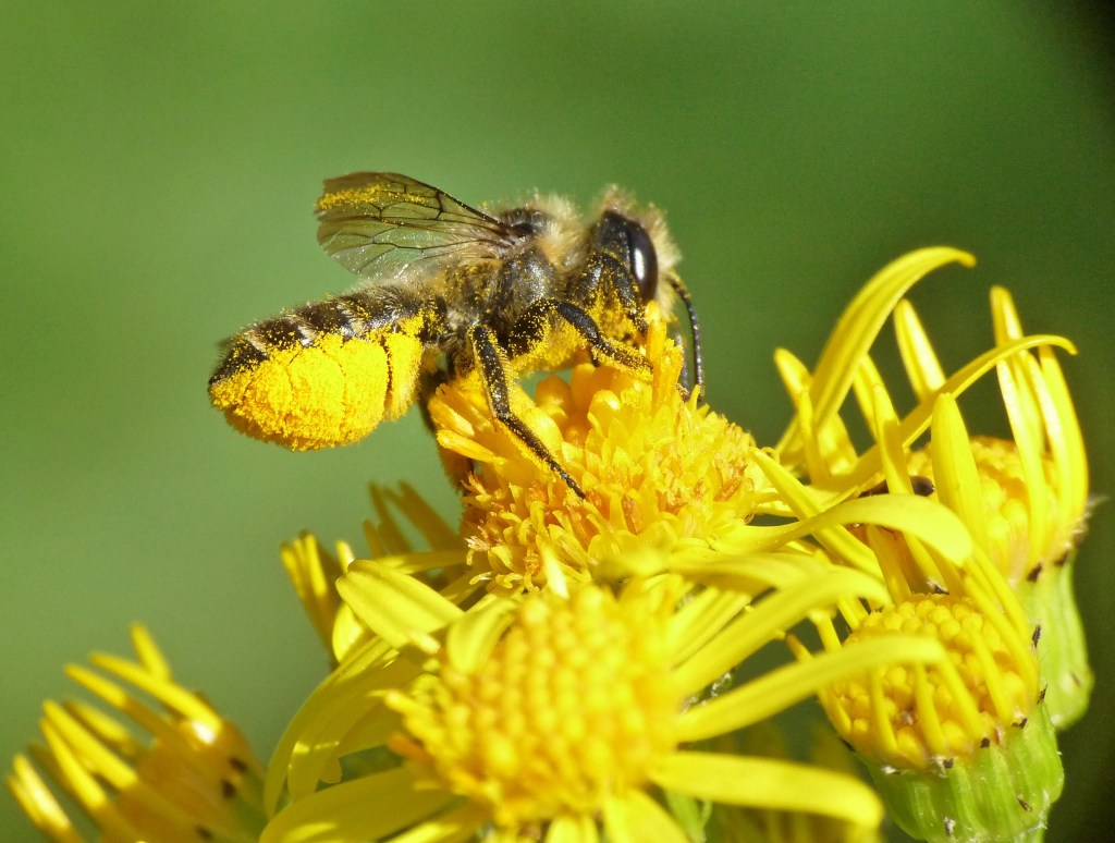 Es común ver megachiles con su característico pelo abdominal lleno de polen amarillo (o de otros colores). Foto: I. Boyd.