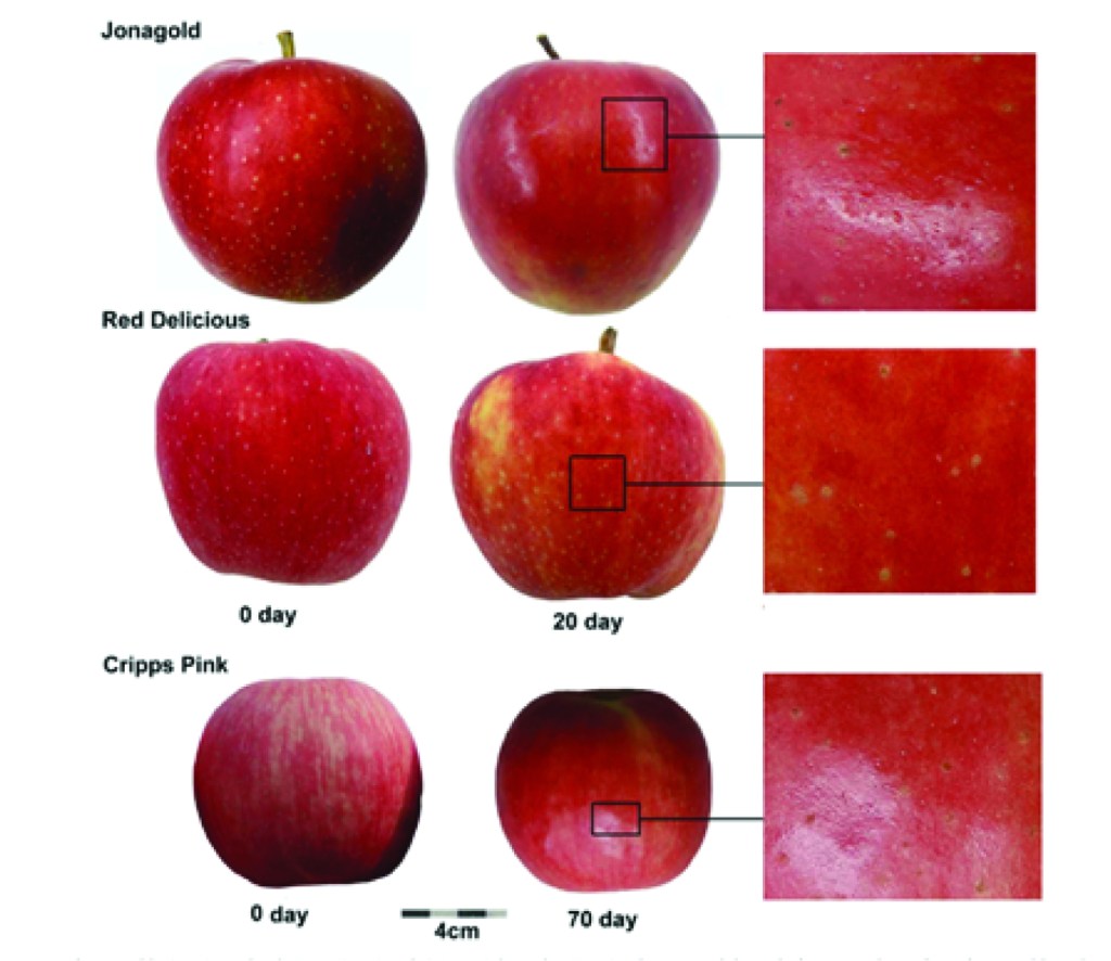 Cuando uno examina una manzana, puede notar un aspecto brillante y reluciente en su superficie que puede no resultar atractivo para el consumidor. Este aspecto brillante se asocia con el trastorno de la piel denominado «grasitud de la manzana». Este trastorno corresponde a la presencia de una capa natural de «cera» producida por la propia manzana, y puede aparecer desde la cosecha hasta el almacenamiento postcosecha. La superficie de la manzana puede incluso volverse resbaladiza al tacto.