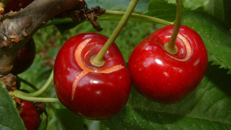 Como es usual en la zona del Atlántico Medio de los Estados Unidos, tormentas con fuertes lluvias ocurren durante el caluroso verano. Esta situación, además de incrementar la humedad relativa del aire y darnos una sensación térmica de varios grados de calor por sobre lo que en realidad marca el termómetro, también trae fuertes y negativas consecuencias para la calidad de la fruta. Uno de los principales problemas que producen estas lluvias estivales es el incremento de la partidura de la fruta, que limita su comercialización y su consumo. Otro importante efecto es la dilución de los azúcares de la fruta dado el gran contenido de agua que éstas absorben producto de las fuertes lluvias, afectando directamente al sabor de la fruta. En este blog hablaremos un poco más a fondo acerca del problema de la partidura de la fruta como resultado de las lluvias de verano.