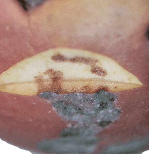 Además, cosechar la fruta en el momento adecuado de madurez reducirá la incidencia de la depresión lenticelar, por lo que es importante evitar retrasar las cosechas. Además, hay que evitar prácticas postcosecha como el retraso del almacenamiento de la fruta en frío, ya que adelantarán el proceso de maduración y, por tanto, aumentarán la susceptibilidad al desorden. Se sugiere seguir estrategias postcosecha apropiadas, incluyendo el almacenamiento a 32°F-34°F durante 3-6 meses, en cámaras de almacenamiento con un 90% de humedad y bien ventiladas.