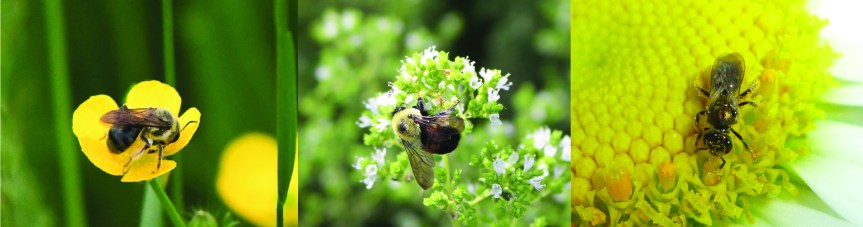 En la zona de Maryland, las abejas pueden ser muy pequeñas (como nuestras abejas metalizadas) o grandes (como las abejas carpinteras y los abejorros), y pueden presentar diversos colores e incluso tener tonalidades metálicas. Podemos reconocer a las abejas por sus dos pares de alas, la presencia de antenas “curvadas” o con “codo”, y, en general, patas y cuerpos cubiertos de pelos.
